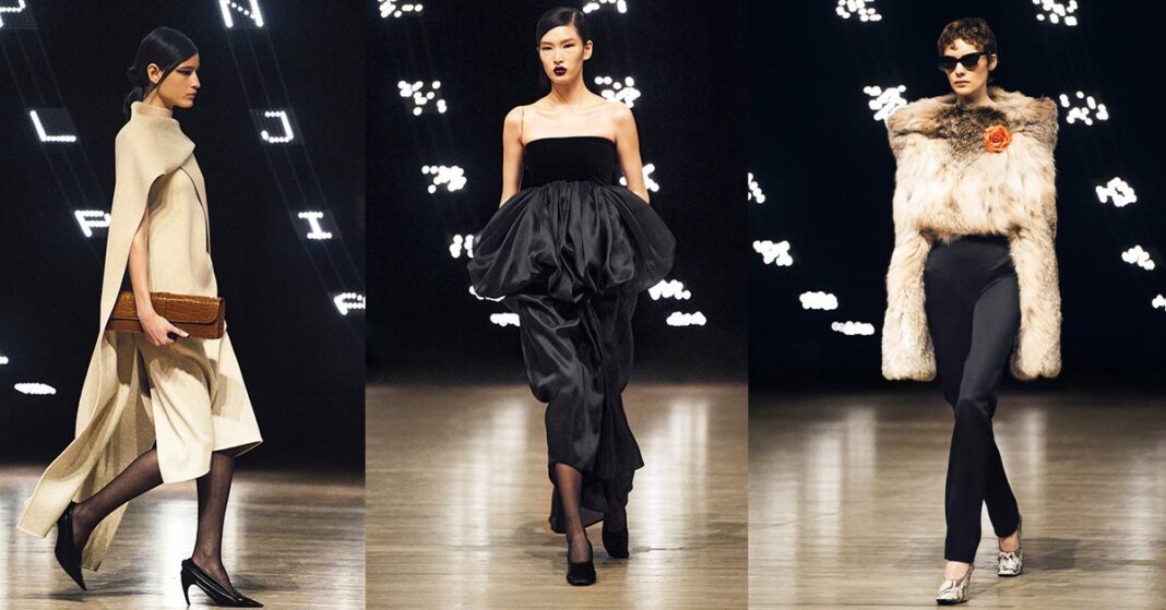 Khaite is largely responsible for many of any given season’s shoe trends in modern times, so I recommend paying attention to what’s on the models’ feet if you want a preview. While there was an array of heel styles, most notable were the “witchy” shoes that were paired with many of the looks. In contrast to the glove shoe trend, the shoes gave the appearance of being oversized and were made with excess leather that bunched up. Others featured turned-up toes, à la The Wizard of Oz.
